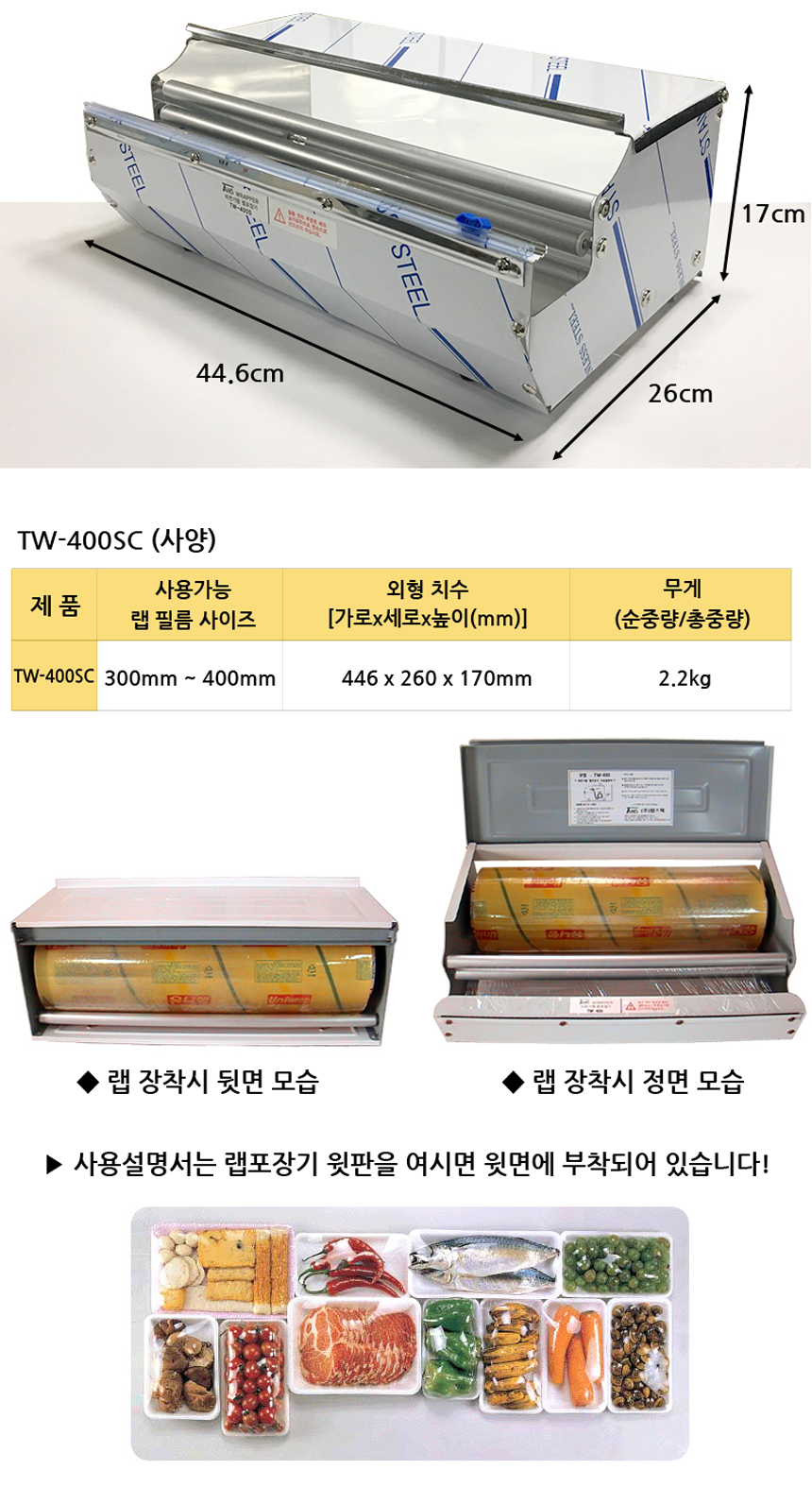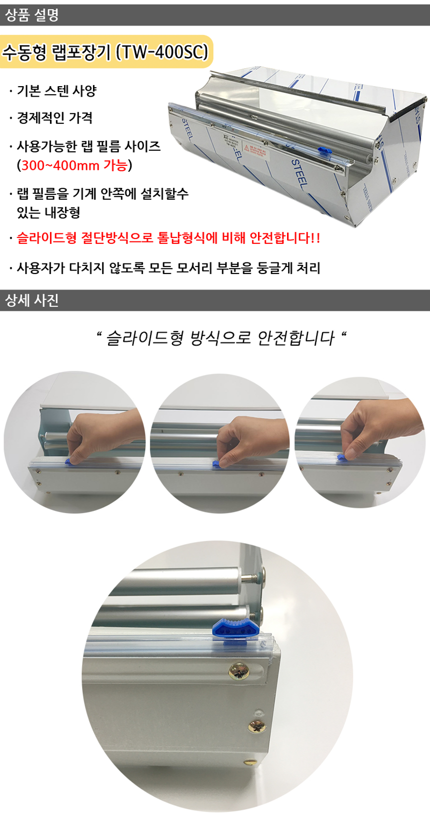 수동형 슬라이드 랩포장기 TW-400SC/스텐/랩핑기/절단기 안전 모닝랩 메탈