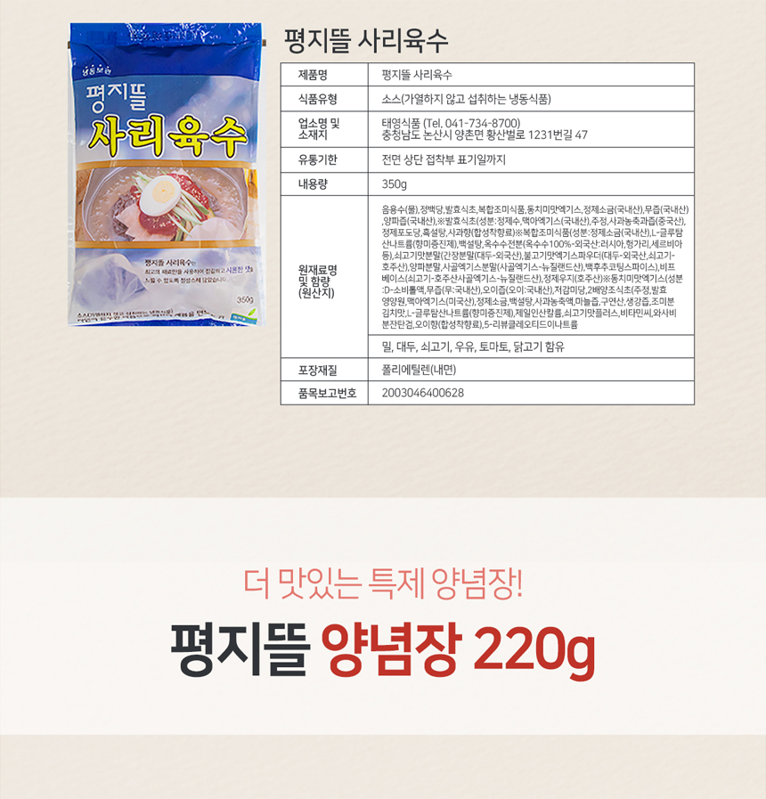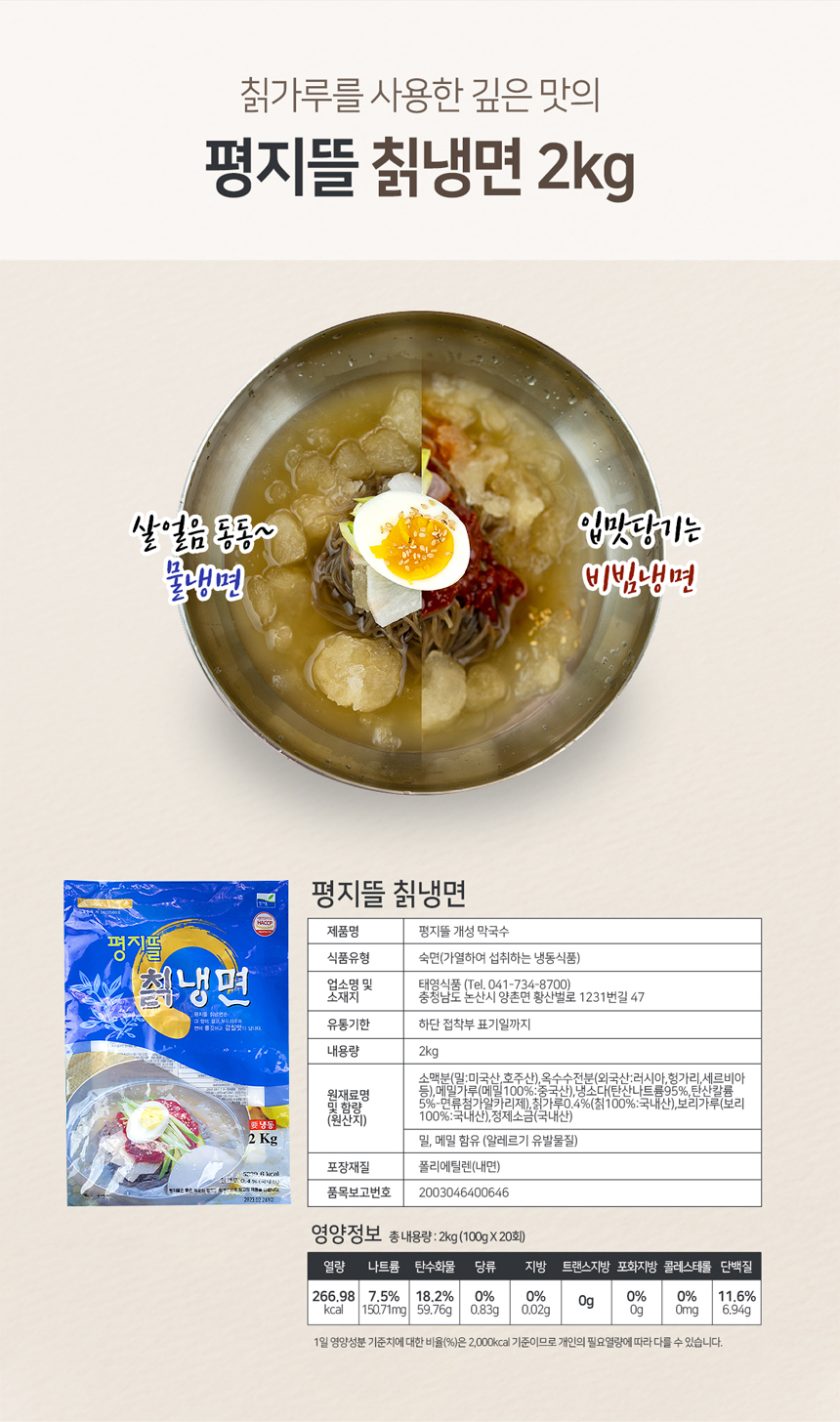 평지뜰 칡냉면 10인분 2kg + 사리육수 10봉 3.5kg + 양념장 220g 물 비빔 맛집 HACCP 인증 대용량