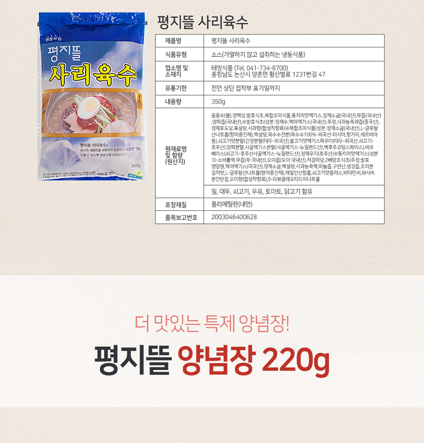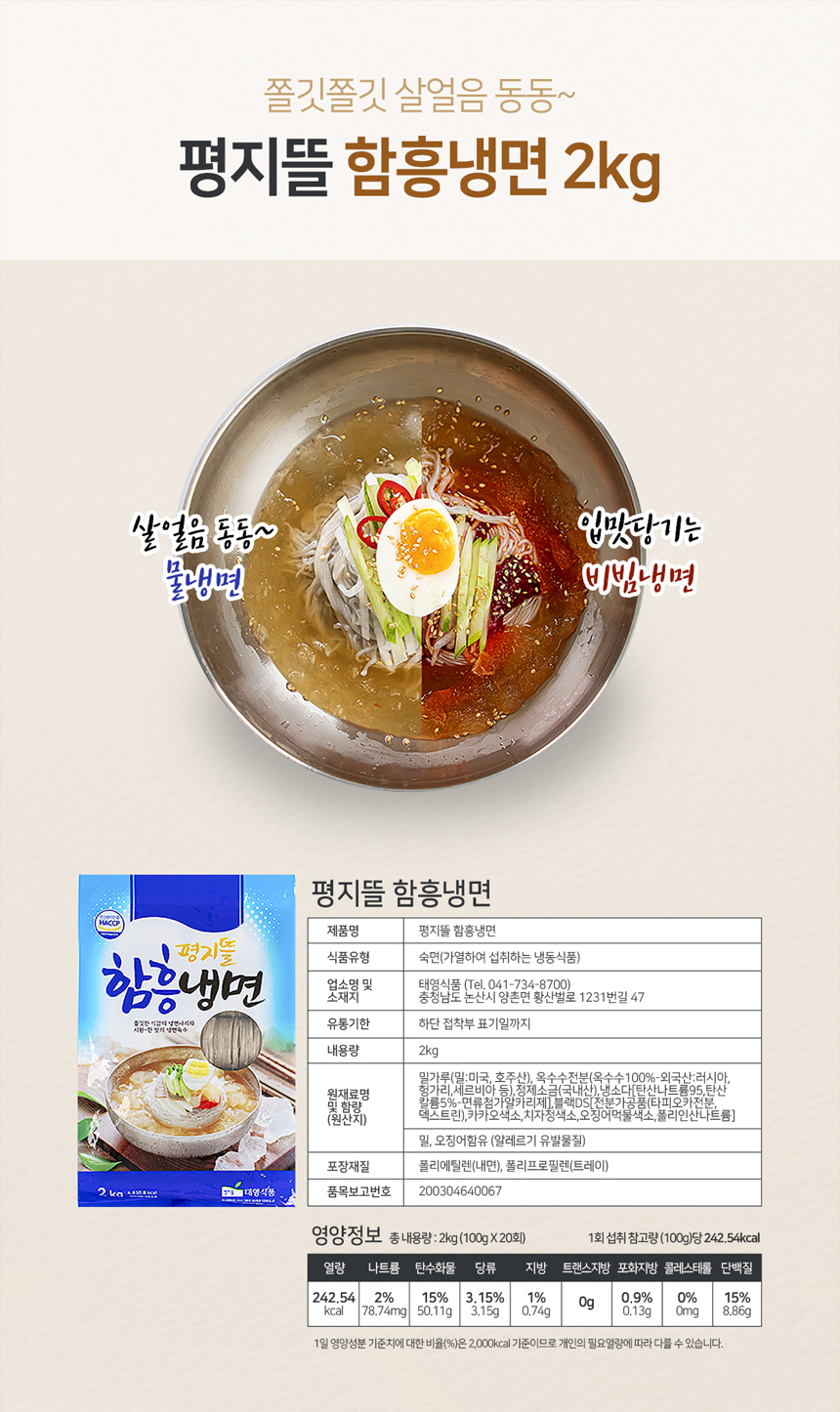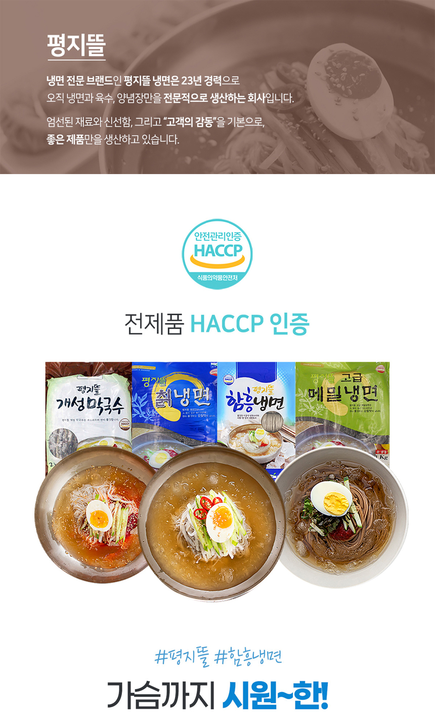 평지뜰 함흥냉면 10인분 2kg + 사리육수 10봉 3.5kg + 양념장 220g 물 비빔 맛집 HACCP 인증 대용량